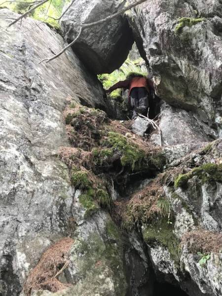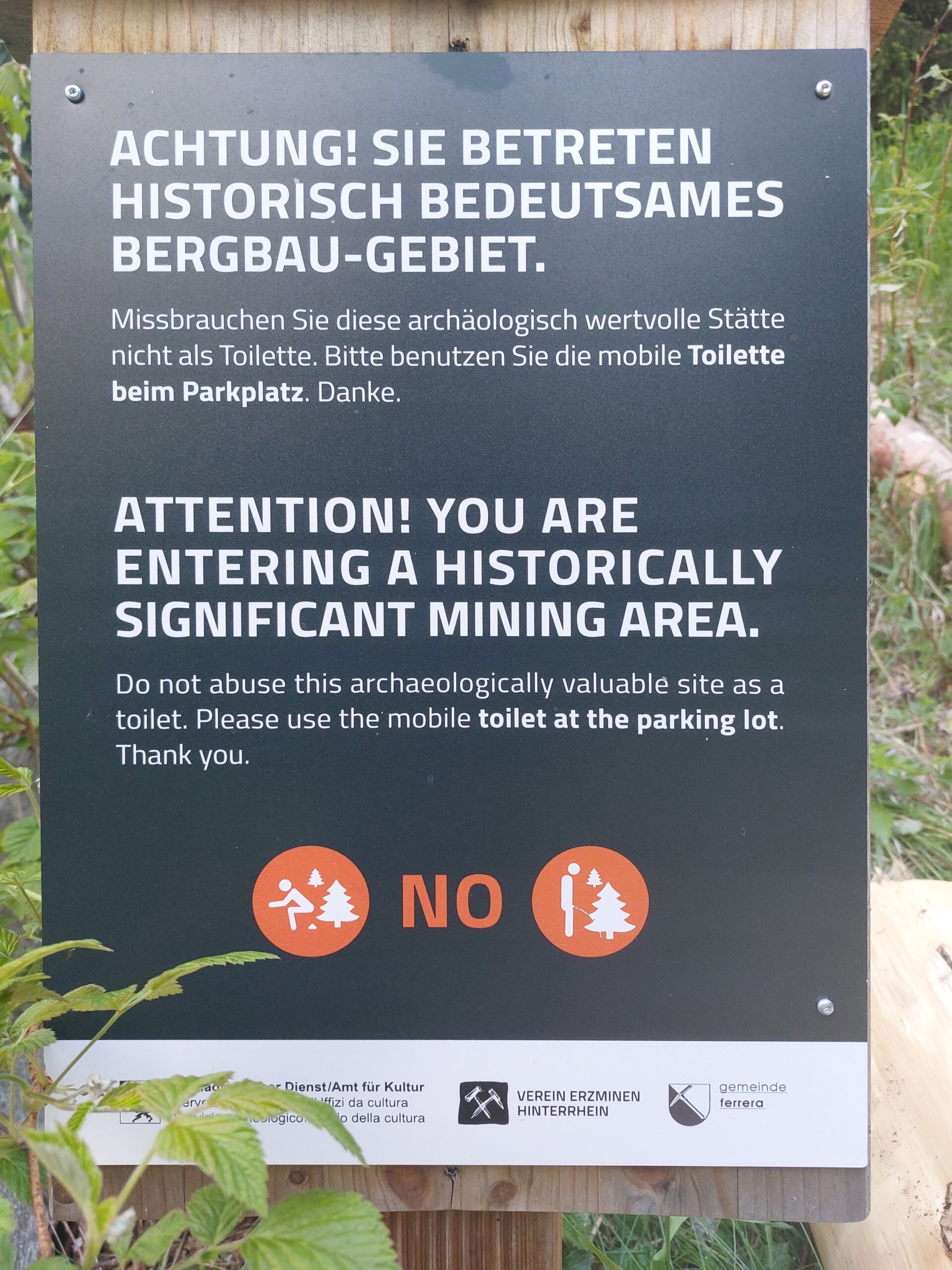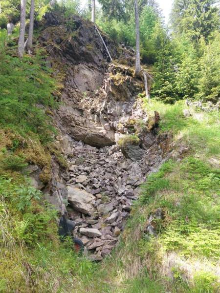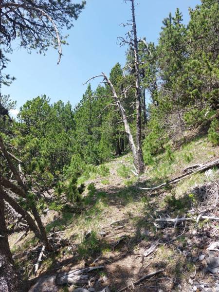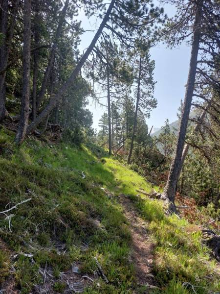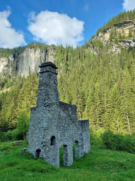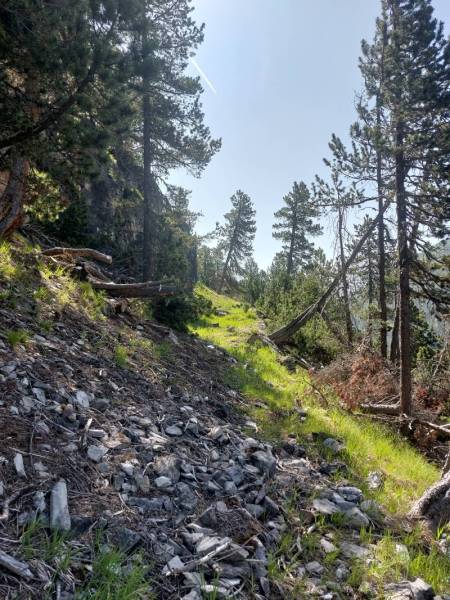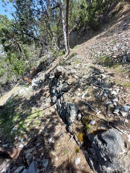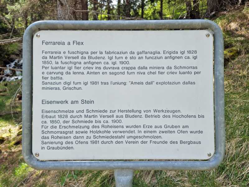 1. Juni. Relativ unbekannt sind die kleinen Eisenabbauten ca. 300 Höhenmeter südwestlich über der Bellaluna. Die nordöstliche Talseite ist mit den Fouras Nininas (Zwerglöcher) und Foppa Chanols etwas bekannter. In der 1. Hälfte des 19. Jahrhunderts wurde dort, in nun einstürzenden bzw. bereits verstürzten Stollen, Hämatit abgebaut. Vor Jahrzehnten führte mal eine Waldstrasse in die Nähe. Diese romantische Strasse ist aber wegen der vielen Rüfenniedergänge längst nicht mehr fahrbar…