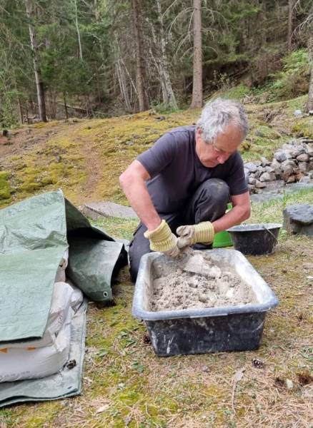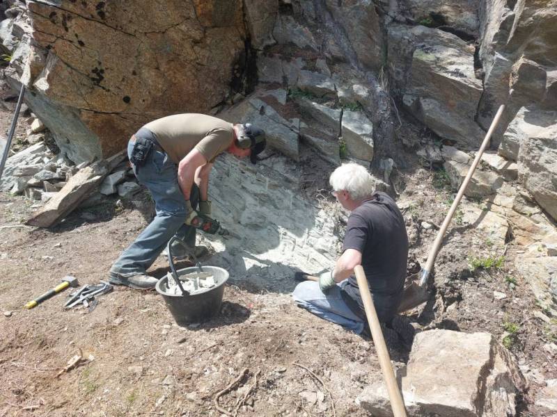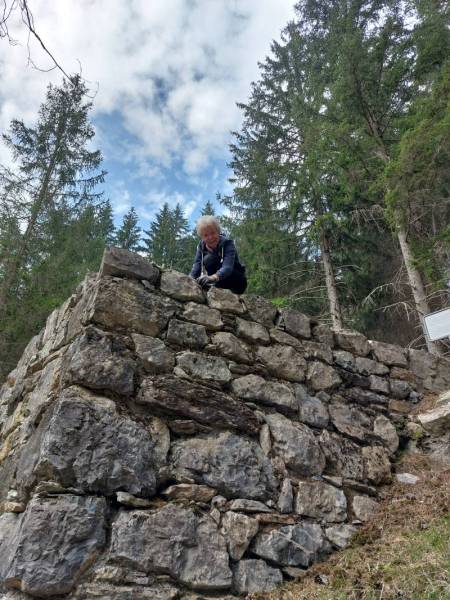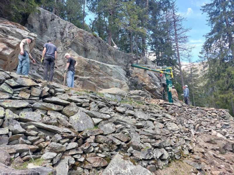 Auf Samstag 24. Mai hat der Verein Erzminen Hinterrhein zu Fronarbeit aufgerufen. 11 folgten dem Ruf und werkten in der traumhaften Landschaft. Während der Arbeitwoche vom 12.-16. Mai wurde die Stützmauer des Rollbahntrasses im Bereich des Krans wunderschön saniert. Nun soll der Kran versetzt werden, damit in der Arbeitwoche im August die sich immer mehr bauchende Fortsetzung saniert werden kann. Vielen Dank den Gastgebern für Würste und Kaffee und natürlich den Arbeitern für die Schwerarbeit. (Bilder Andres und Husu)