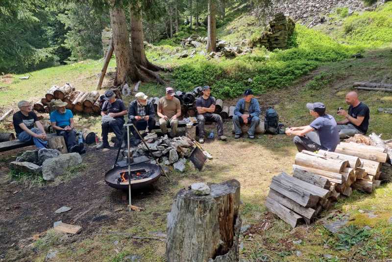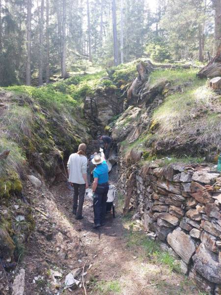 Am 23.8.25 trafen sich an 14 Bergbauhungrige zur Exkursion. Wir besammelten uns am Waldeingang oberhalb Scalottas und stiegen nach Gruba auf. Dort krochen einige in diverse Stollenlöcher oder begutachteten Steine auf der Halde. Danach gab es Würste, Kaffee und Kuchen. Wir bewunderten die wunderschöne Moorlandschaft und besuchten die Forschungsstätten der prähistorischen Kupferverhüttung. Danach ging es runter an den Marmorerasee, über den Staudamm zum Kupferstollen Vals. Die Waghalsigen erstiegen dann noch die Burg Marmels. Wir beendigten die Exkursion bei gemütlichem Beisammensein in der Gaststätte am See. (Bilder: Philipp, Gion, Husu)