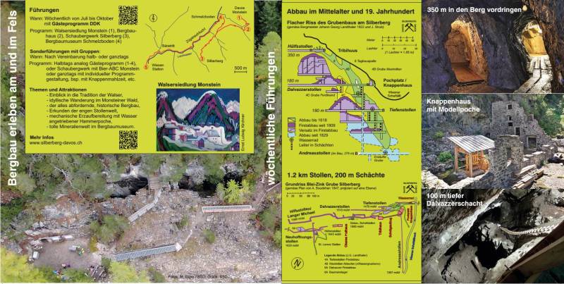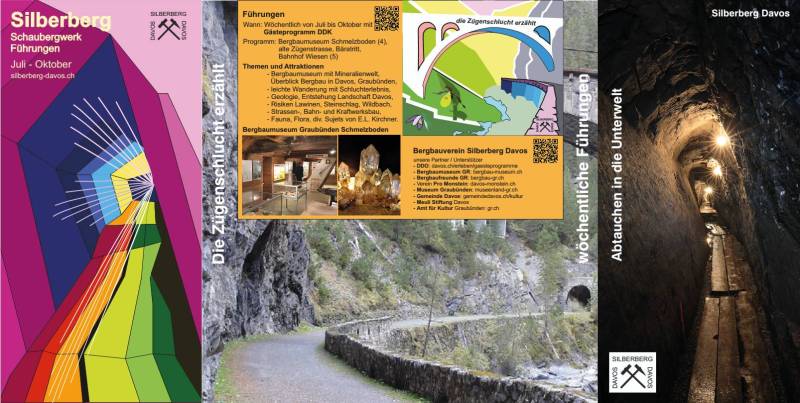Ruedi hat wunderschöne Flyer für den Silberberg- und die Zügenschluchtführungen, sowie für das Bergbaumuseum Graubünden im Schmelzboden gestaltet. Flyer können sowohl beim BSD, wie im Bergbaumuseum Graubünden bestellt werden.