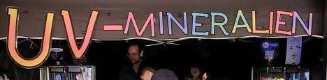 Im Dunkeln der Bühne wurden fluoreszierende Mineralien mit UV-Lampen gezeigt.