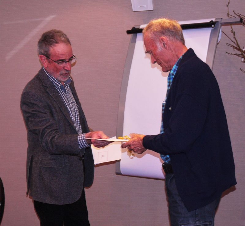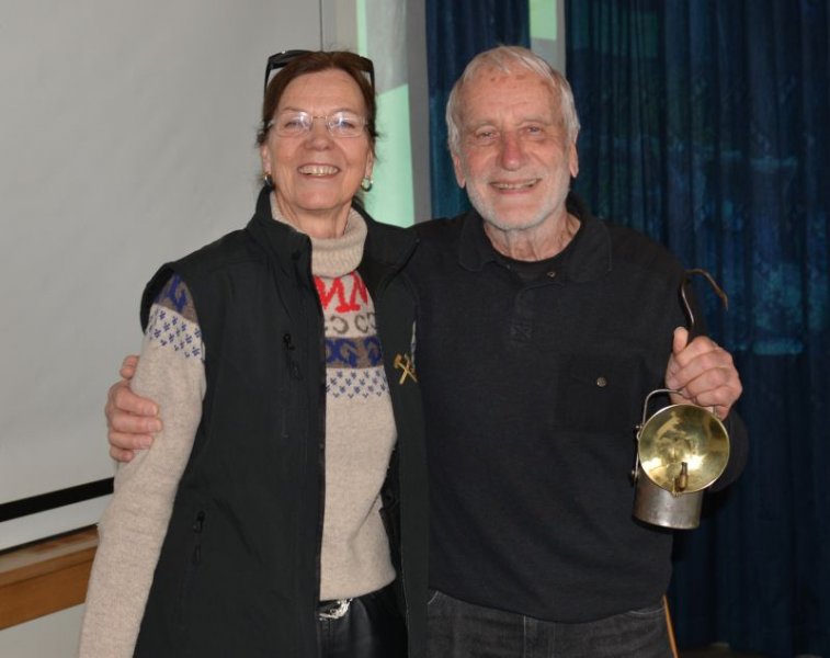 Walter Good, langjähriger Redaktor am BERGKNAPPE und Mitglied der Redaktions-kommission hatte auf die Versammlung hin seinen Rücktritt erklärt. Die Präsidentin verabschiedet ihn und überreicht ihm eine Grubenlampe.