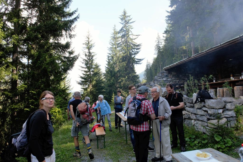 Nach einer geschichtlichen Einführung durch Bruno Riedhauser im kleinen Museum wurde zuerst der Besucherstollen, wo tief im Berg der Alpkäse reift, befahren. Dann besichtigte man die Tagebaue.Ganze Felswände wurden abgesprengt. Ein tiefer, wassergefüllter Schacht ist für die Besucher mit einem Steg begehbar gemacht worden. Im klaren Wasser sind Stempel und Podeste aus Holz zu erkennen. Auch eine Fahrte wäre noch da aber eben, tief unter Wasser. Neben den Abbauten in der Nähe der Alp sind in den Felsen überall weitere Löcher zu sehen. In der Regel sind es kurze Stollen und Schürflöcher. Sie sind auch nicht alle einfach zu erreichen. Bei einigen ist doch etwas Schwindelfreiheit notwendig. Kein Problem damit haben die Gämsen. Verschiedene der Stollen werden vermutlich vor allem im Winter von den kletterfreudigen Tieren als Unterstand benutzt. Zum Glück waren die Kriechstrecken, denn auch solche gab es, nicht verschmutzt.